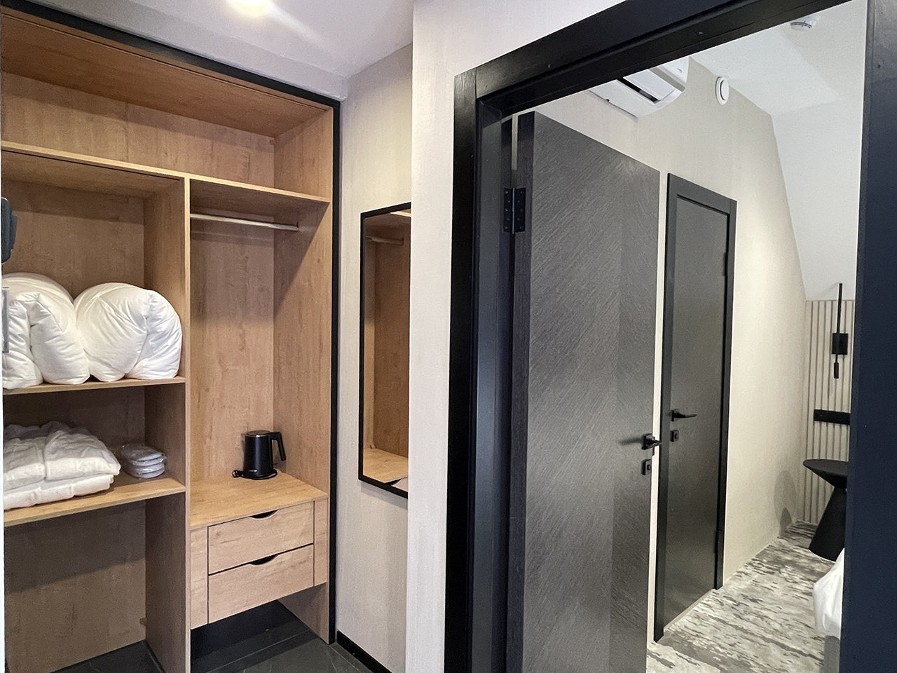 - Мебель: вешалка, зеркало, кровати односпальные /одна двуспальная кровать, прикроватный столик, стулья, шкаф